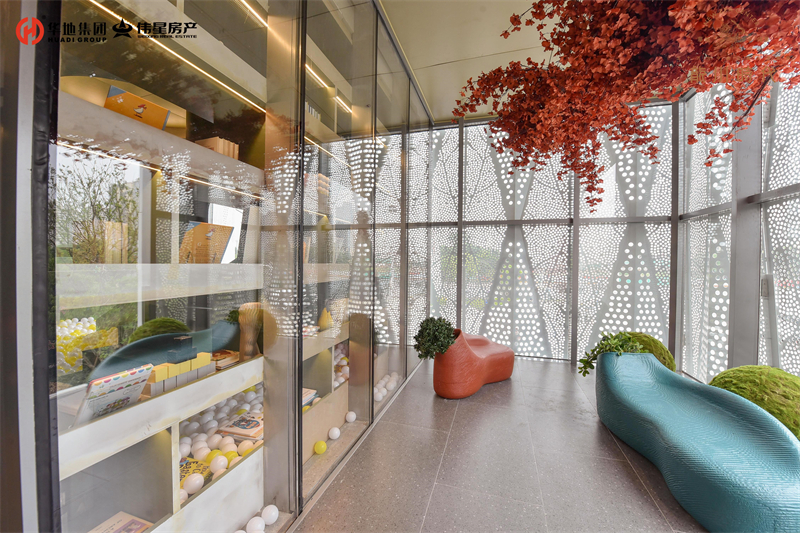 整個營銷中心以極具特色的丹霞地貌為色彩靈感。美學藝術、潮流引領、年輕生態、社交互動四大理念交織,一座“峽谷咖啡廳”,氤氳美好生活??Х取辍⒆?、游趣……讓建筑不再冰冷,而是成為生動的、溫暖的、富有趣味的生活主場。