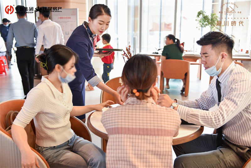 在示范區開放之前,華地偉星·龍川時代就受到市場的強烈關注和高度追捧。客戶預約爆滿,本次開放現場進行分流參觀,但還是難擋客戶的熱情。除去美麗景致外,華地偉星·龍川時代與客戶之間的美好緣分也在延展,來來往往人流如織,置業顧問用他們的熱情耐心地接待每一組訪客。每一組客戶到來,他們都主動上前,一絲不茍地為他們引導至內場、細心講解,客戶滿意的笑容是館內最美好的風景。